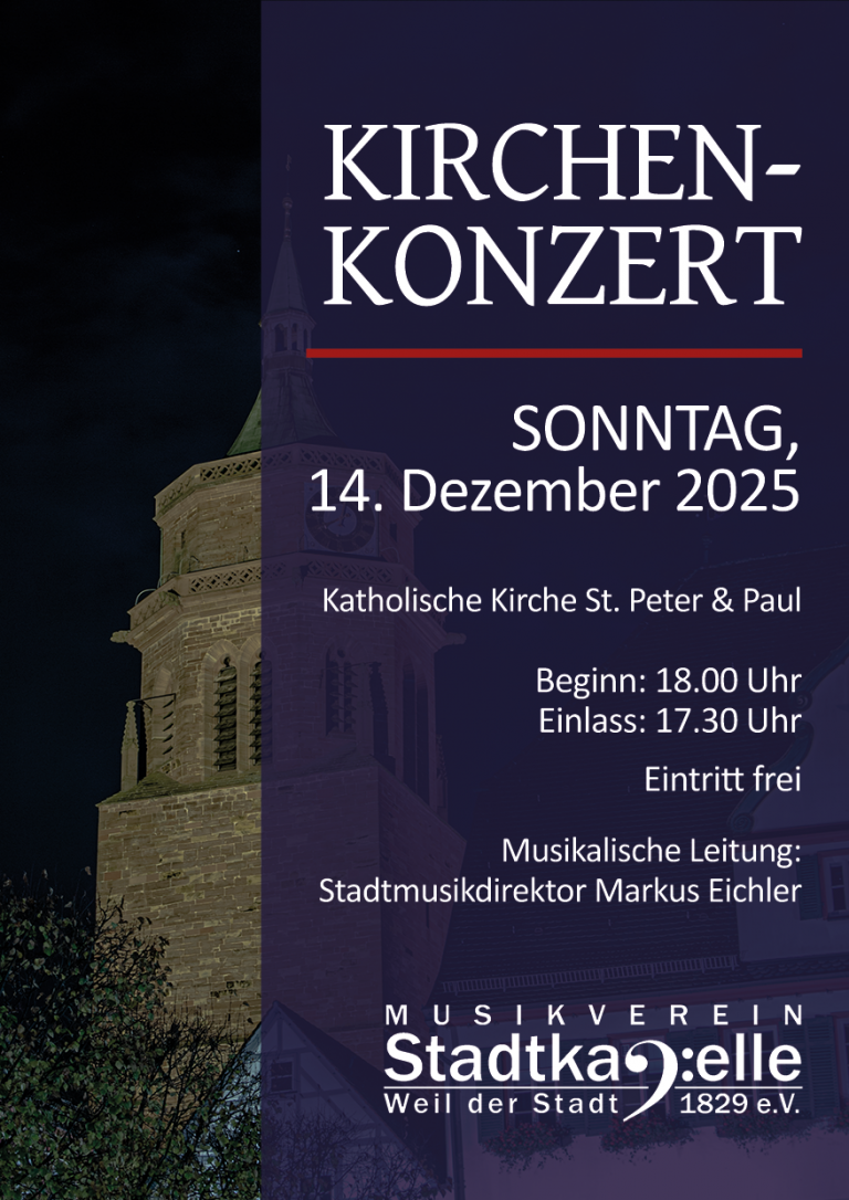 Der Musikverein “Stadtkapelle” Weil der Stadt lädt zum Kirchenkonzert am 14. Dezember Am Sonntag, 14. Dezember 2025, lädt der Musikverein “Stadtkapelle” Weil der Stadt unter