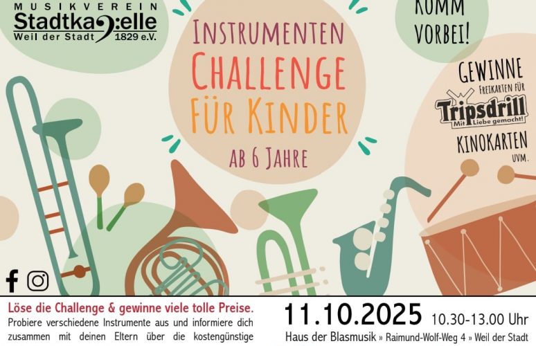 Alle Schulkinder aufgepasst! Kommt vorbei uns gewinnt tolle Preise!Löse die Challenge bei uns im Haus der Blasmusik und gewinne viele tolle Preise, wie. z.B. Freikarten für den Freizeitpark Tripsdrill, Kinokarten, uvm. Eine möglichst erschwingliche Ausbildung für unseren Nachwuchs zu ermöglichen und den Jugendlichen eine sinnvolle Freizeitbeschäftigung mit möglichst viel Spaß zu ermöglichen, sind die Kernaufgaben …